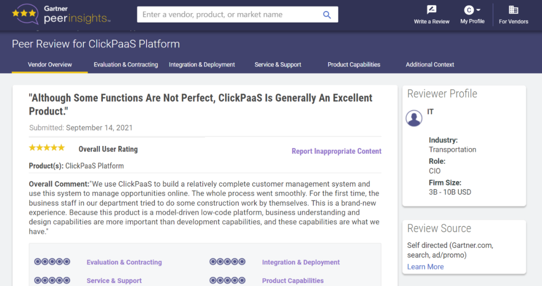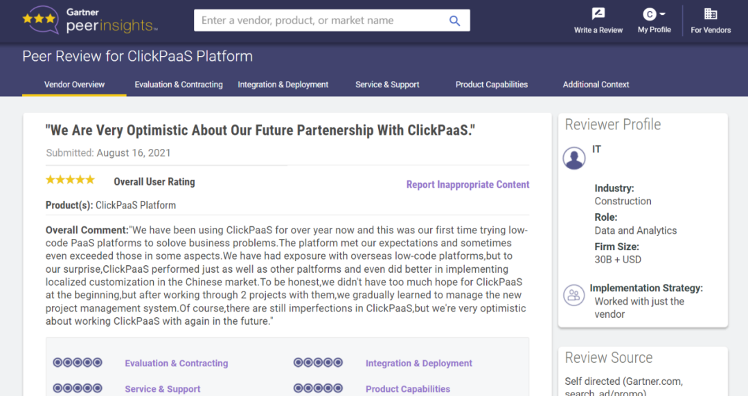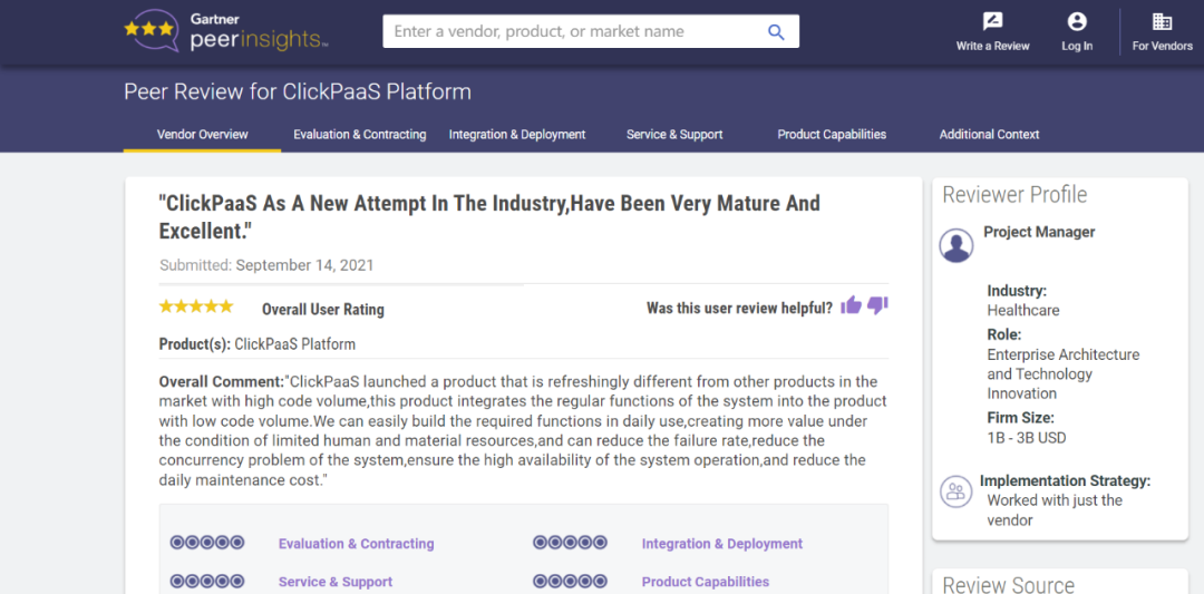 Tips::::【Peer Insights】——用户对企业IT产品和服务发布真实评价的平台。。。目前已有355个市场,,,255,000条经过验证的评价。。。每一条评价Gartner会针对参评企业营收规模及参评人员信息做验证、、评价内容做多维核实。。